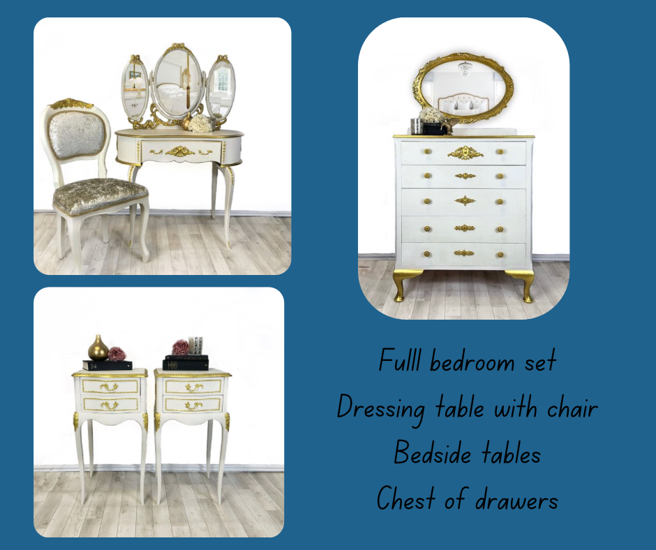 French Louis dressing table | vintage dressing table | cream and gold dressing table with chair